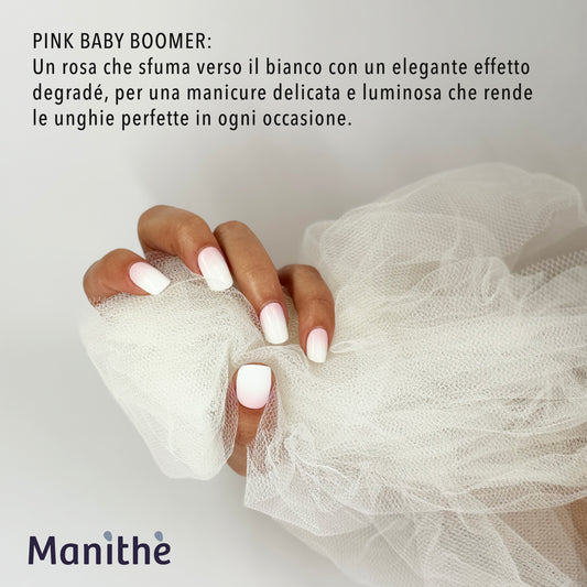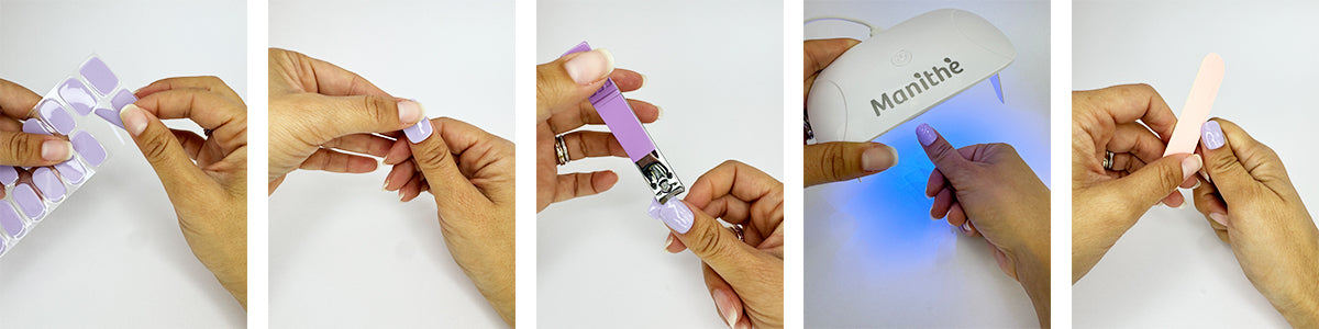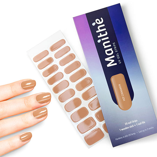 Classic nail strips are made with regular nail polish, acrylic, vinyl or even paper, while Manithè gel nail strips are made with real gel polish. They last longer and need to be cured with a UV lamp to complete the process.